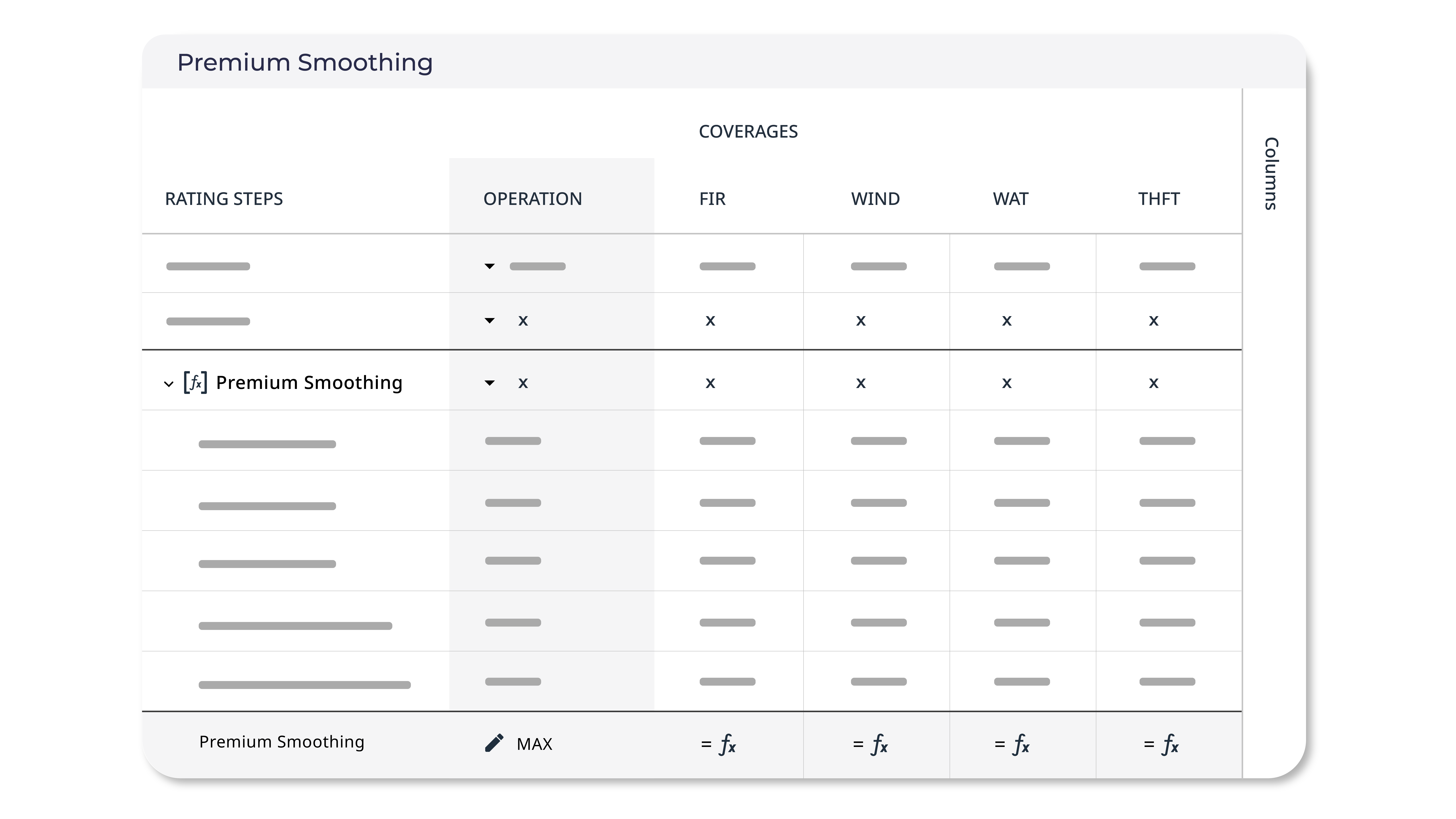 - Define coverages, attributes, factor tables, and formulas in a structured, auditable way